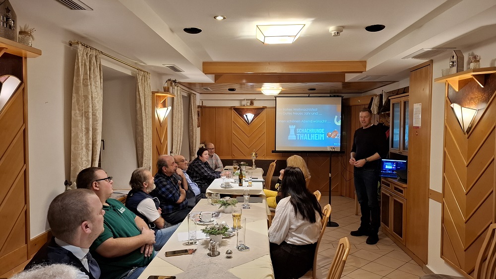 Weihnachtsfeier 2025 Unsere erste Weihnachtsfeier hat am 20.Dezember 2025 im Gasthaus Hubauer in Thalheim stattgefunden. Eine besondere Freude war es uns, den Bürgermeister der Gemeinde Thalheim in unserer Runde zu begrüßen, Begonnen wurde die Feier mit einem Jahresrückblick aus allen Veranstaltungen unseres Vereines, Eine nette Erzählung von Walter Martin rundete den schönen Abend damit ab. Nach dem guten Essen ließen es sich einige auch nicht nehmen, am Schachbrett gleich einige Vorhaben In der weihnachtlichen Stimmung wurde noch bis in die Abendstunden hinein gefeiert ... Frohe Weihnachten ... ein Gutes Neues Jahr ... wünscht: ![]()